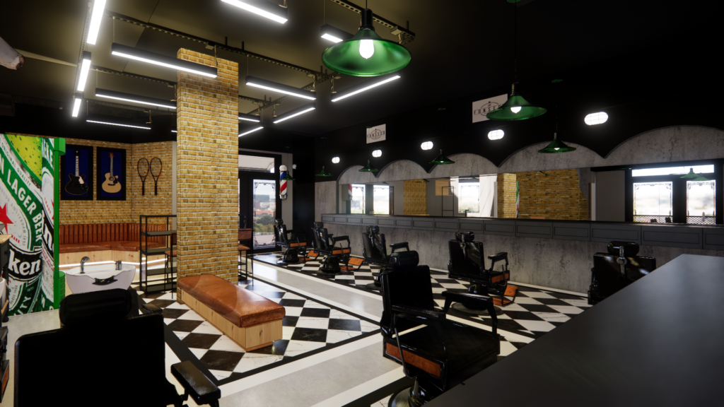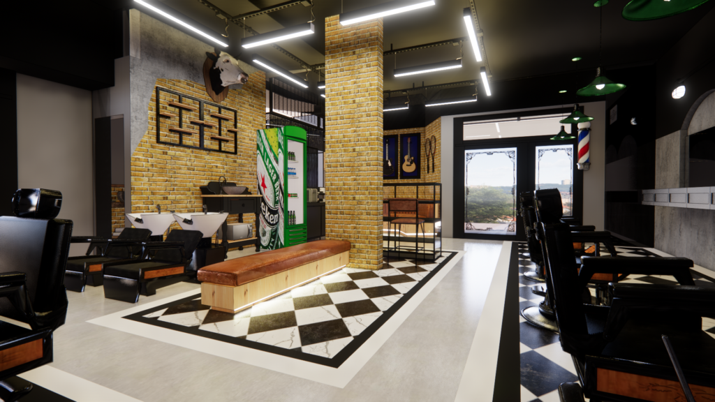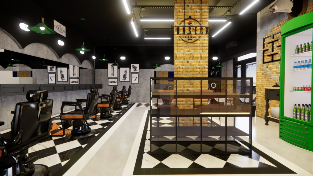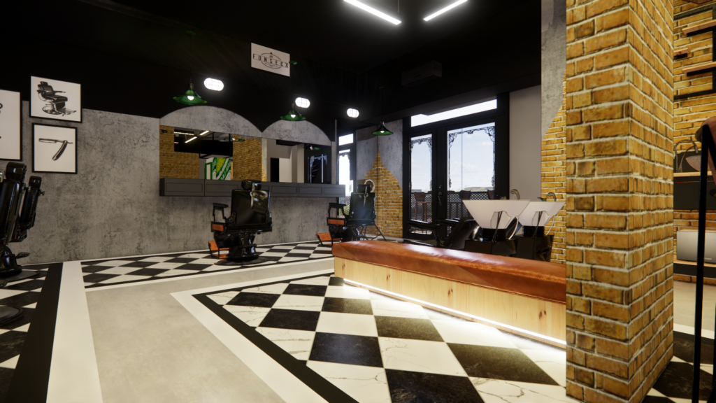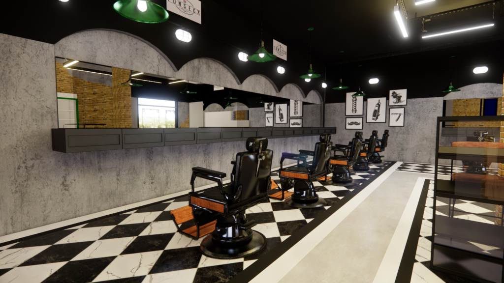 Este projeto traduz uma barbearia de identidade forte e urbana, inspirada no estilo industrial clássico, reinterpretado de forma contemporânea. A combinação de tijolo aparente, concreto, preto predominante e iluminação linear aparente cria um ambiente marcante, masculino e autêntico. O piso em xadrez resgata a estética tradicional das barbearias old school, enquanto o layout amplo e organizado valoriza a experiência do cliente e o fluxo de trabalho. Elementos icônicos, materiais brutos e contrastes bem definidos constroem um espaço imponente, funcional e cheio de personalidade, pensado para ser memorável desde a entrada.
