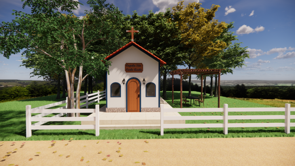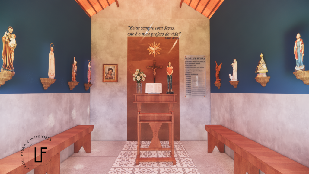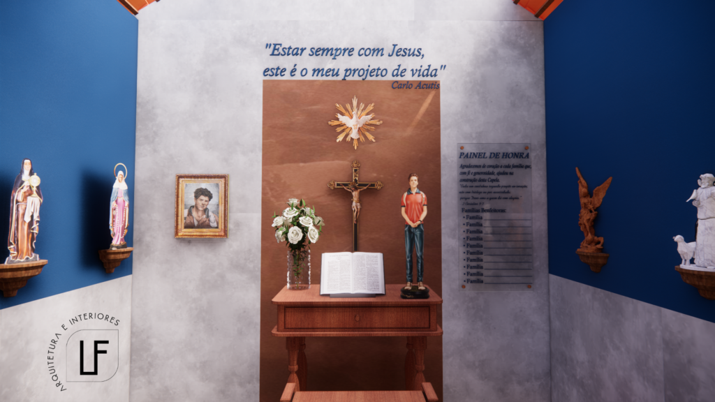 Este projeto busca criar um espaço sagrado, acolhedor e repleto de espiritualidade, onde o silêncio, a simplicidade e a fé se encontram em harmonia.Inspirada na vida e no testemunho do Beato Carlo Acutis, a capela foi concebida com linhas puras, cores serenas e materiais naturais, exaltando a presença do divino através da arquitetura.A paleta de tons neutros com detalhes em azul mariano e amarelo ouro valoriza a luz natural e cria uma atmosfera de recolhimento e paz interior. Cada elemento — do altar ao painel de honra — foi pensado para traduzir a beleza da fé católica com autenticidade, devoção…